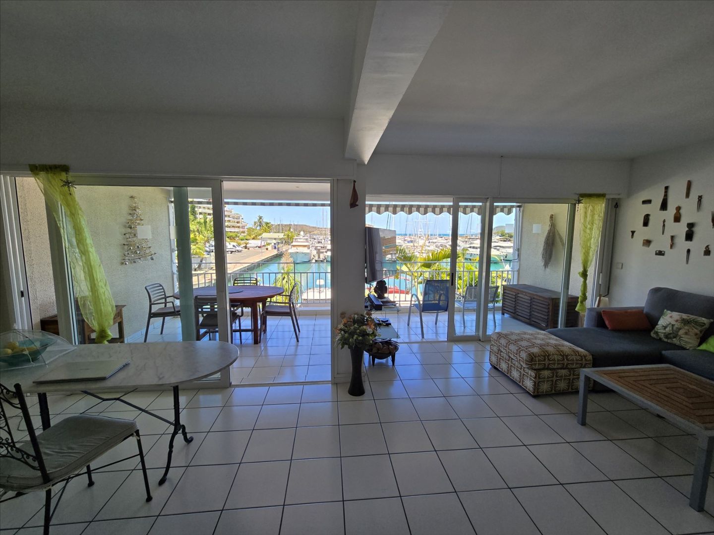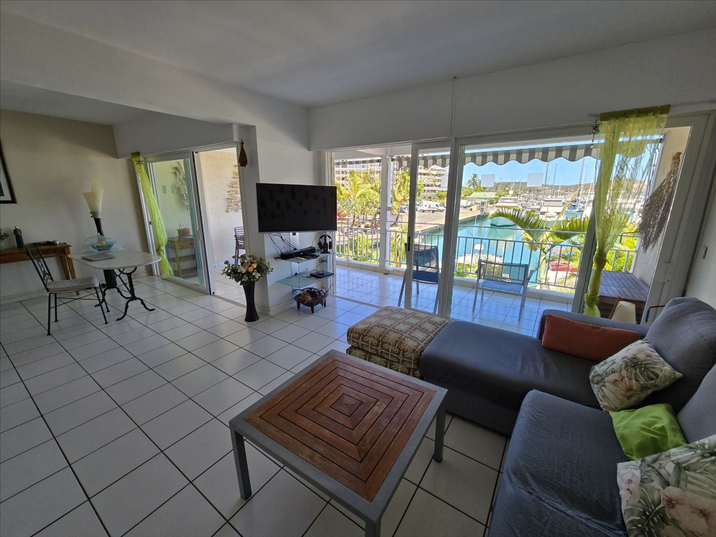 Au cœur de Port Plaisance, au Sunset Marina, F3 de 77m², traversant, terrasse de 17m² face à la marina, séjour avec cuisine équipée, 2 chambres climatisées, grande buanderie, salle d'eau, wc, , 1er étage sans ascenseur, résidence sécurisée avec concierge, 1 parking, parkings visiteurs. A 2 pas du centre commercial, piscine et 5 mns de la plage et des écoles.- Appartement F3