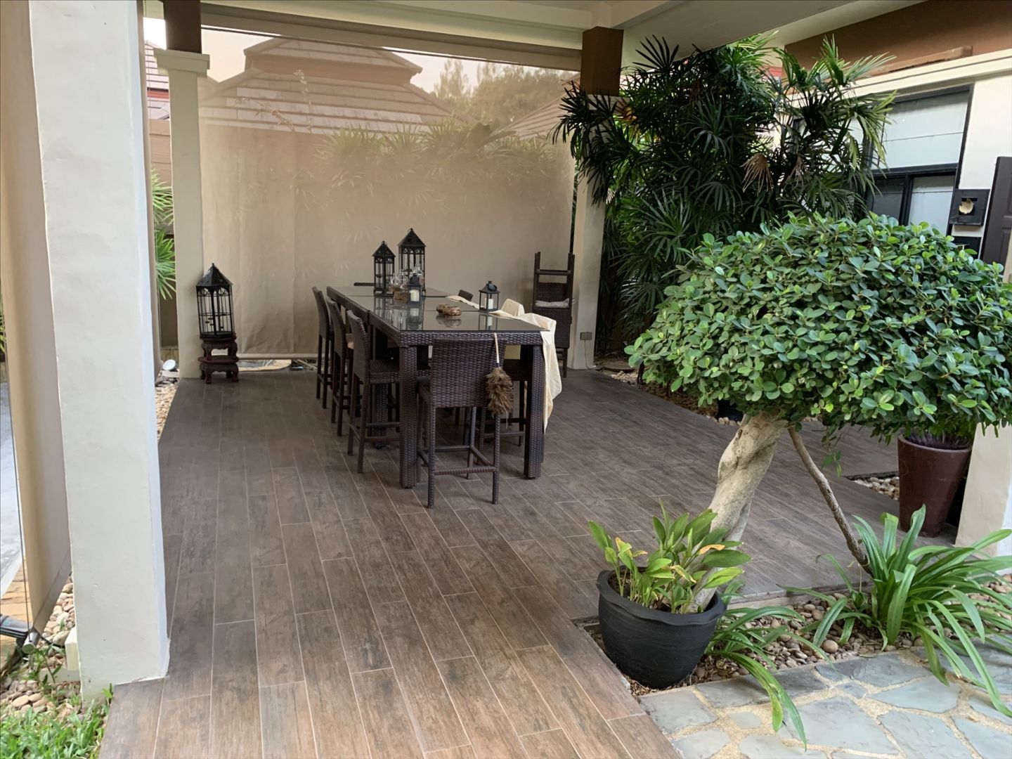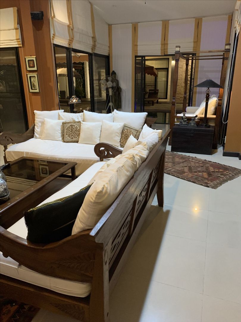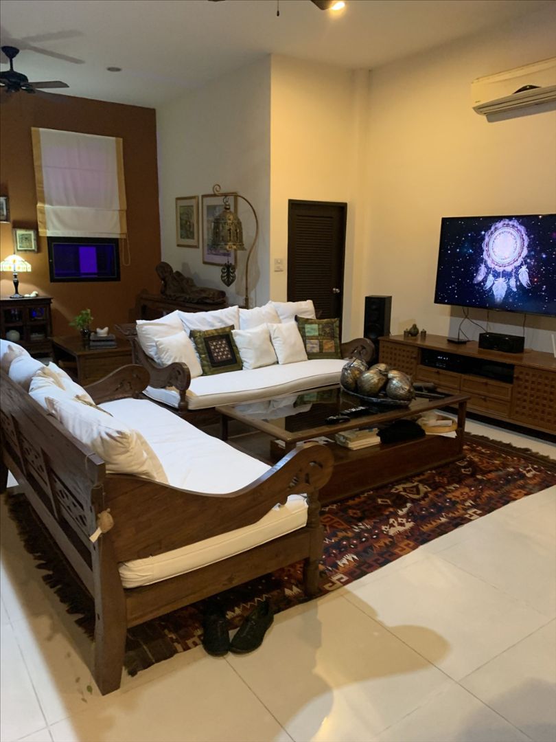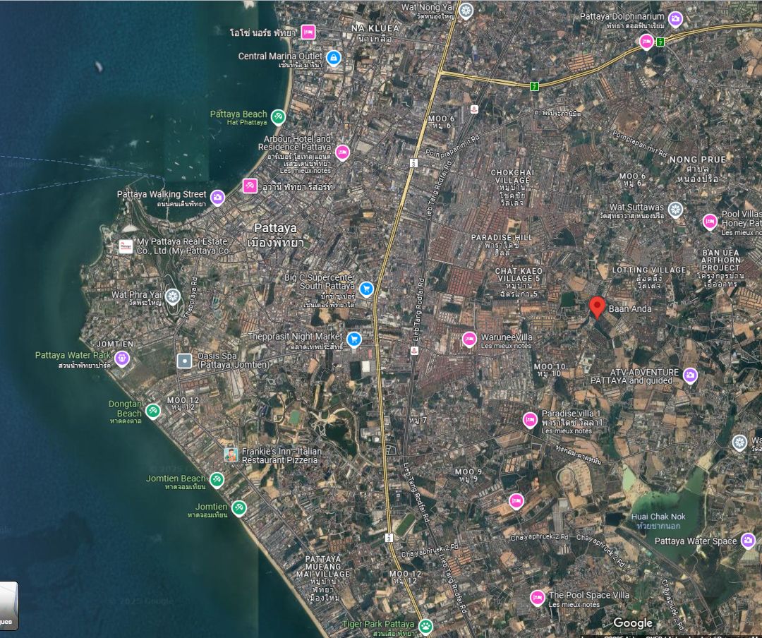 Vous aimez la Thailande, pour un projet de retraite, de villa de vacances ou revenus locatifs, le lotissement de Baan Anda situé à 10mns du centre de Pattaya, disposant d'installations communes : centre de fitness, piscine, ainsi qu'un joli jardin public et des gardes de sécurité 24h/24. Villa F5 d'env. 300m², bien conçue et décorée avec soin, sur un terrain plat, clôturé de 9,86a. La villa se distribue autour d'une piscine, elle dispose de 4 chambres climatisées avec salles de bains privatives, un vaste salon de 70 m², d'une cuisine moderne en teck avec îlot ouverts sur la piscine, une salle à manger extérieur couverte, une dépendance service avec salle d'eau et chambre de maid, un parking couvert pour 2 voitures. Vendu entièrement meublée et équipée (lave vaisselle, lave et sèche linge, réfrigérateur américain, cave à vin). Faibles charges. Rachat des parts de société. Visite sur place possible.- Maison F5
