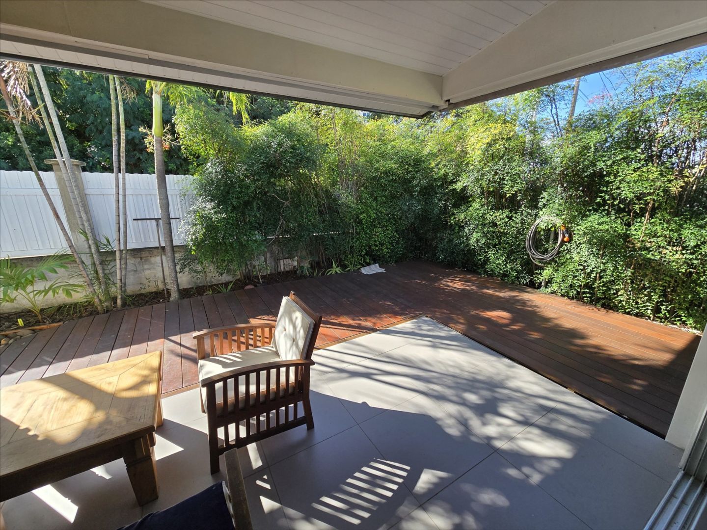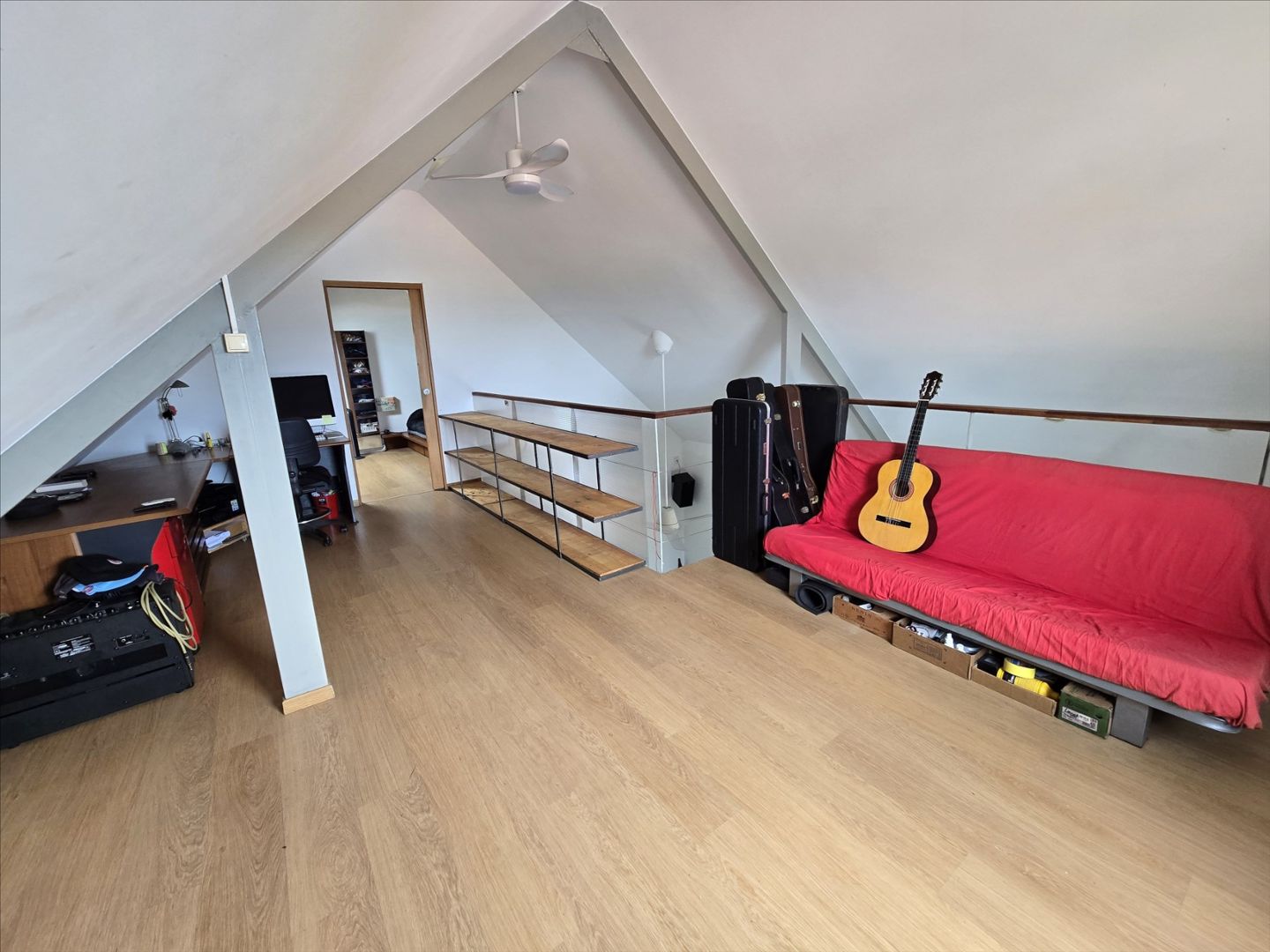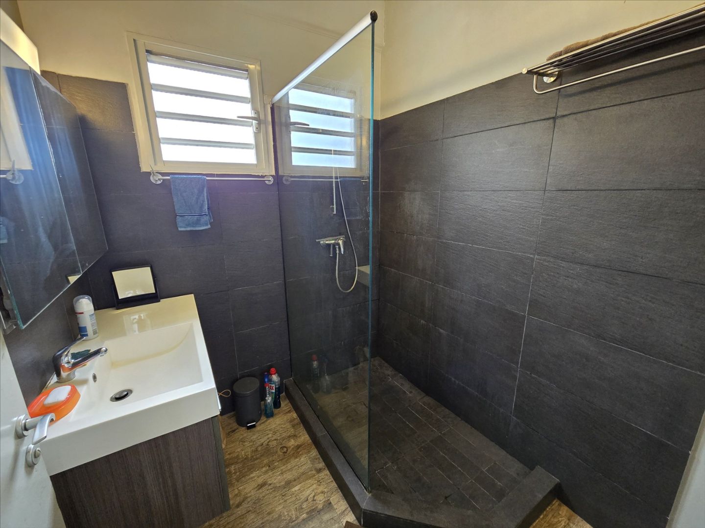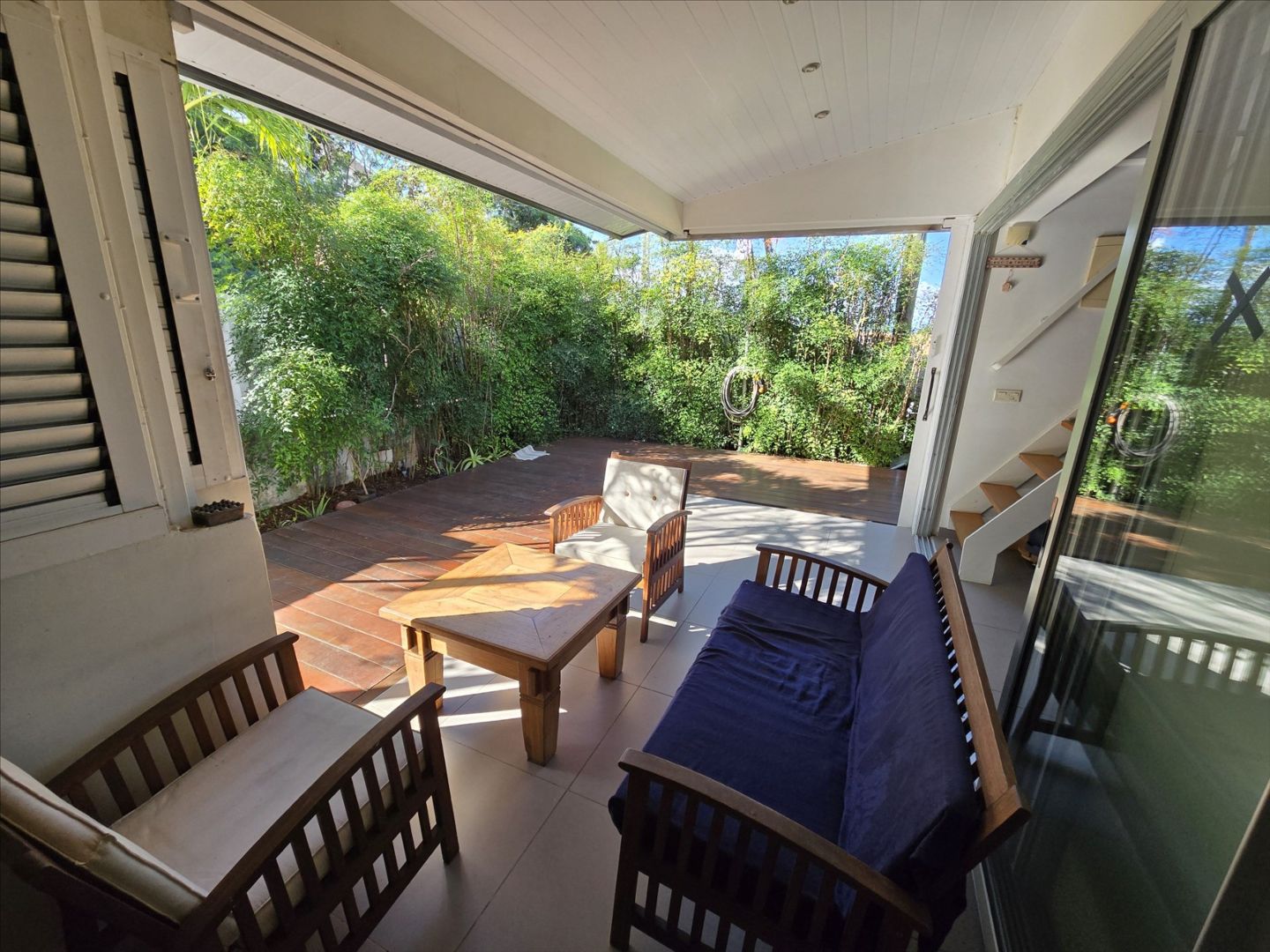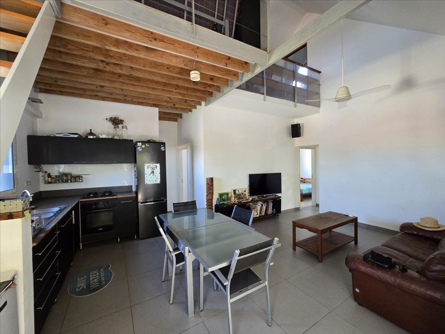 Haut de villa F5 + mezzanine de 106m² (Carrez). RDC : séjour/cuisine équipée, 3 chambres, salle d'eau/wc, belle hauteur sous plafond. Etage : une grande mezzanine aménagée avec une chambre. Buanderie, terrasse avec grande ouverture/fermeture donnant sur un deck, garage fermé, rue calme, sans vis à vis, proche écoles, commerces et plages. Copro. de deux sans charges. A saisir!- Maison F5