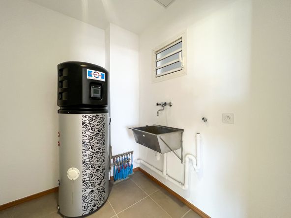 Au calme, dernier étage avec ascenseur, en angle, belle vue dégagée, deux chambres climatisées avec placards, salle d'eau, sanitaire indépendant, cuisine équipée, grande buanderie avec pompe à chaleur. Deux parkings couverts sécurisés, résidence récente pas de foncier et décennale!- Appartement F3