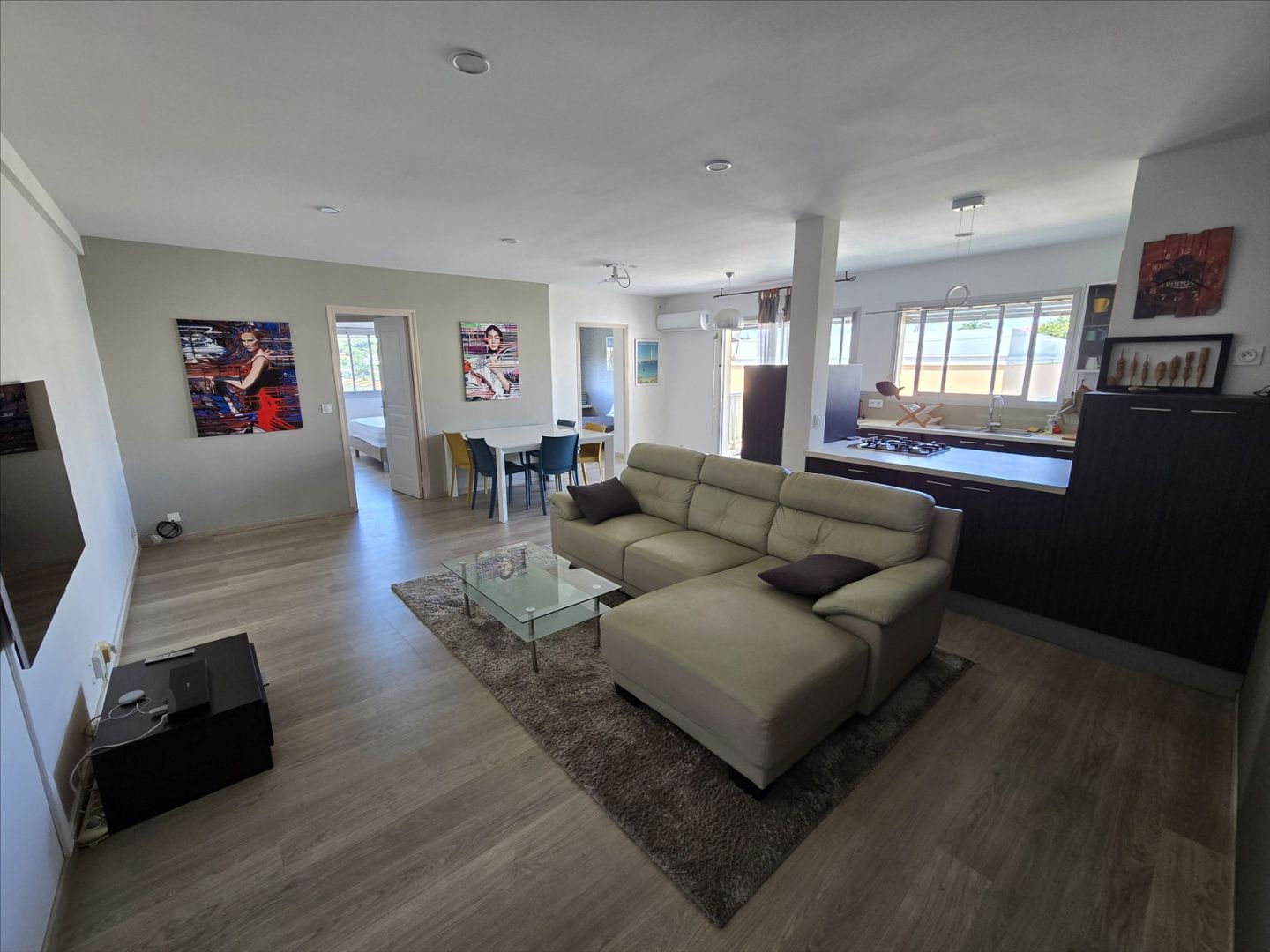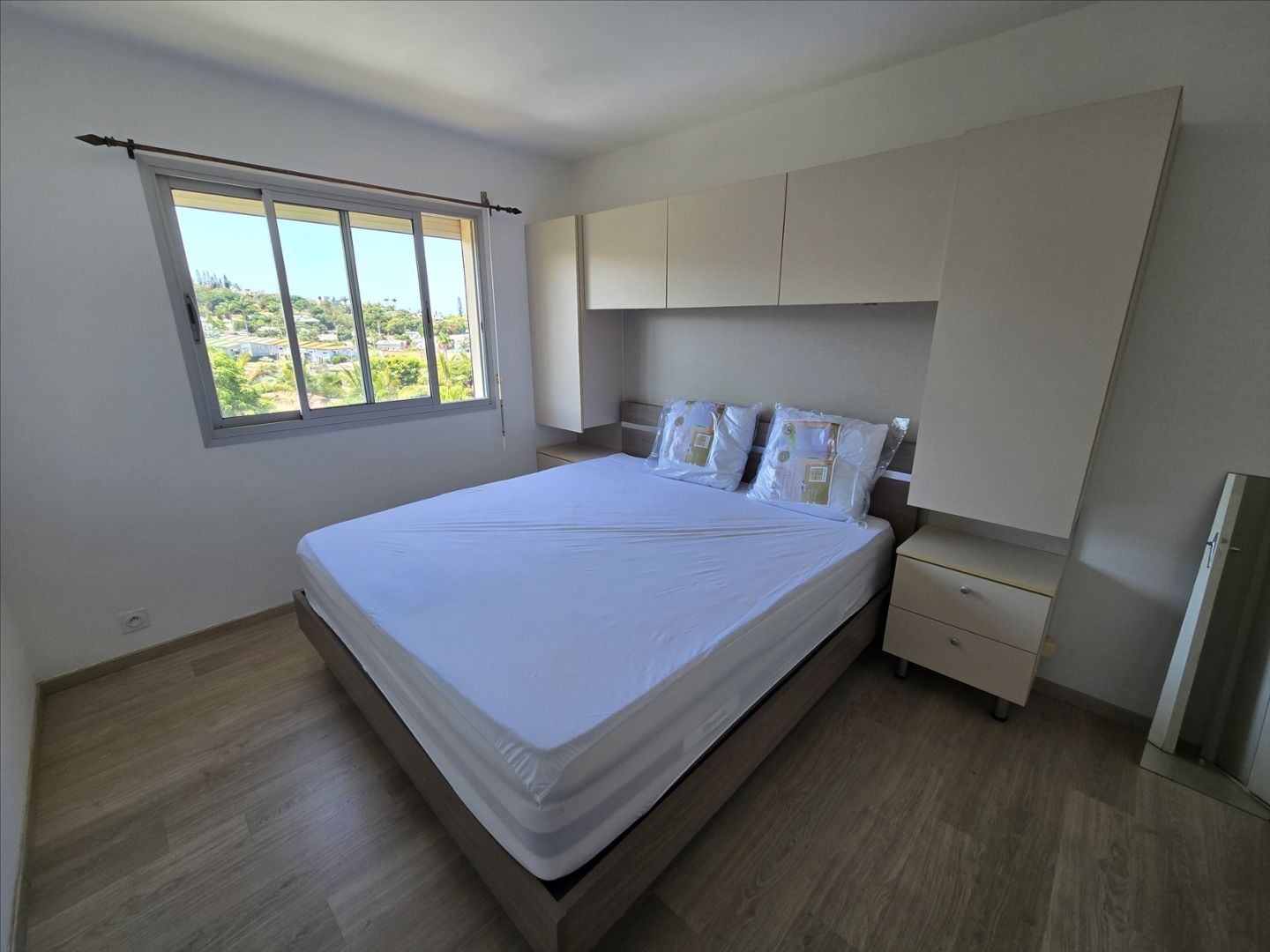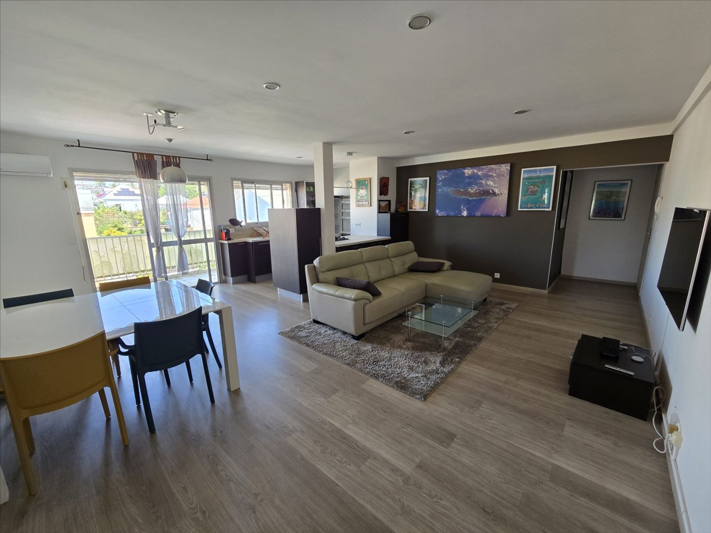 1er et dernier étage sans ascenseur, F3 de 72m², meublé et équipé, électroménager, vaisselles, linge de maison etc... séjour/cuisine, 2 chambres avec placard, salle d'eau, wc séparé, terrasse, climatisation, très calme, 1 cellier, 2 parkings sécurisés. Eau et forfait électricité 10 000F compris. 21, boulevard Extérieur, à 2 pas du tribunal et à 10 mns des plages. Bail de 6 mois minimum. Libre!- Appartement F3