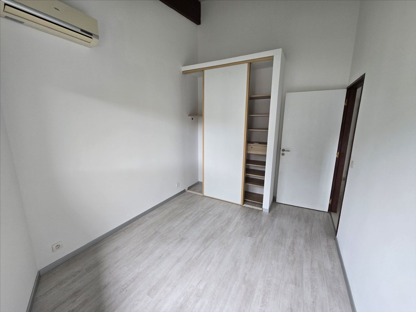 Joli F3 au 2e et dernier étage sans ascenseur, très grand séjour avec cuisine équipée, belle hauteur sous plafond, 2 chambres climatisées avec placard et VR, salle d'eau, wc séparé, terrasse, cellier, 2 places de parking sécurisées, rue P. Bloc. Libre!- Appartement F3