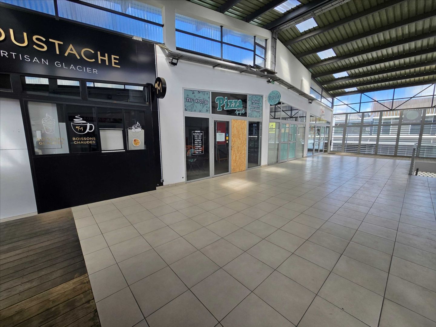 Au 1er étage avec ascenseur, galerie commerciale PLAZA APOGOTI, 56m² aménagé, terrasse de 15 m², coin cuisine et sanitaire, idéal snack ou restauration,parkings clients assurés. Libre de suite!- Immobilier d'entreprise Local commercial
