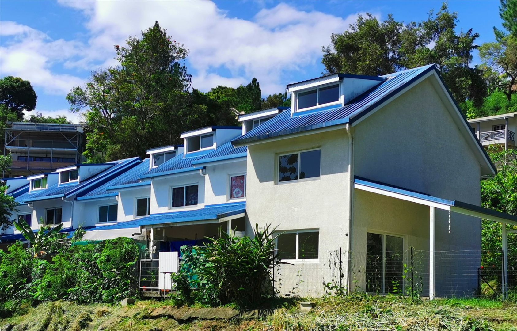 Villa mitoyenne F4 de 86m² en triplex avec jardinet et terrasse couverte, séjour, coin cuisine, chambres et salle d'eau au 1er étage, mansarde de 12m² au dernier étage, 2 wc. Quartier calme, derrière le collège de Boulari, parkings. Libre- Maison F4