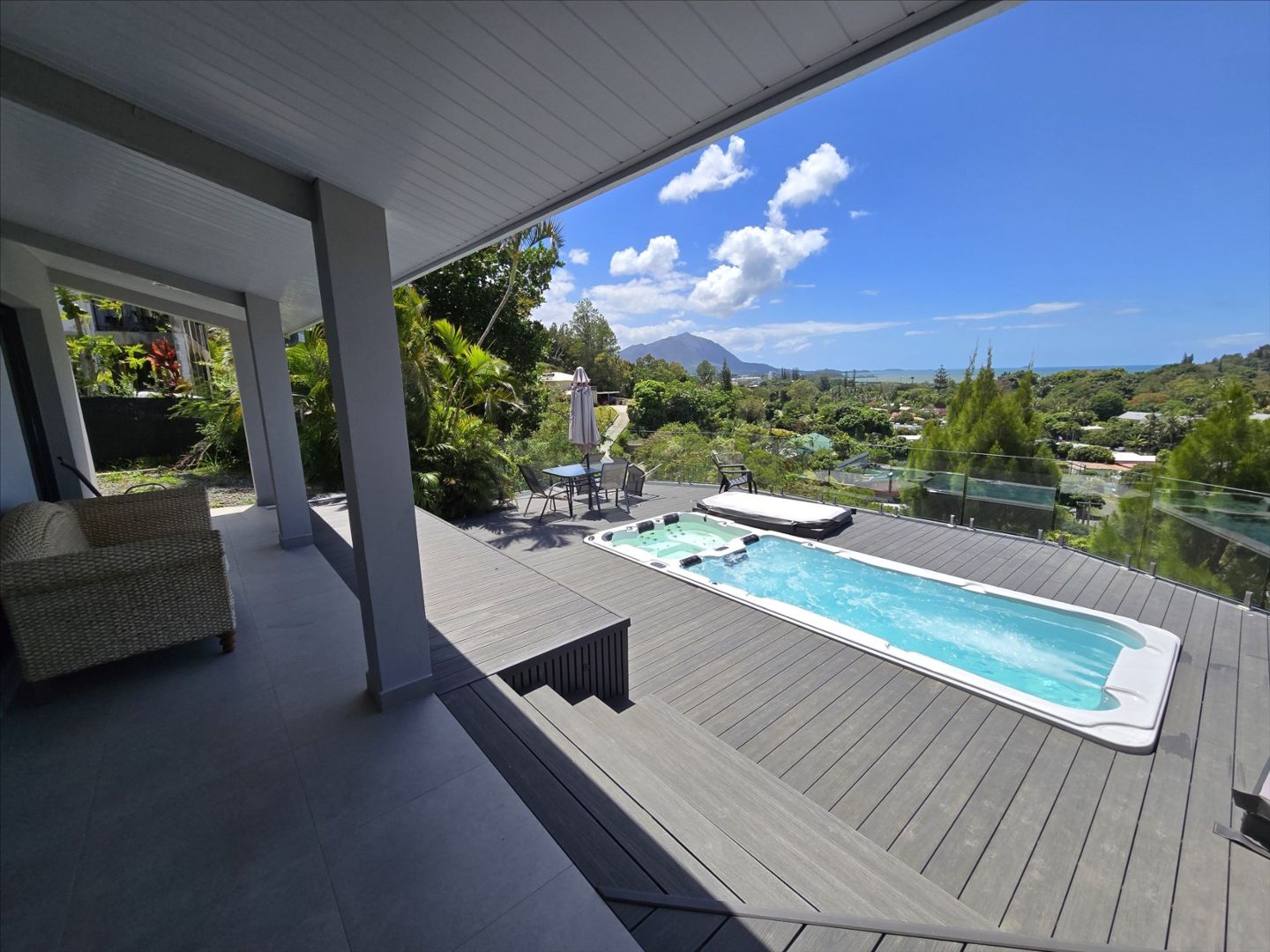 Superbe villa F7 env. 250m², entièrement rénovée du sol au plafond, très belles prestations, beaux volumes, vrd, fosses, électricité neufs, entrée, grand séjour avec belle cuisine équipée, 6 chambres dont 1 avec salle d'eau/wc, une superbe salle d'eau, wc séparé, terrasse avec spa de nage et magnifique vue dégagée et mer, portail électrique, CE solaire, carport, très calme, en fond d'impasse. A saisir!- Maison >F5